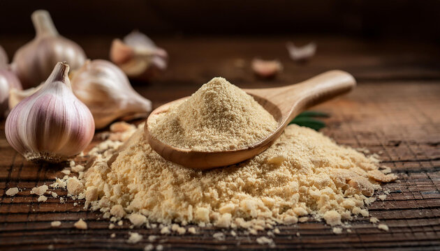 Garlic powder is dehydrated and finely ground garlic cloves. It has a strong, pungent aroma and serves as a convenient alternative to fresh garlic.